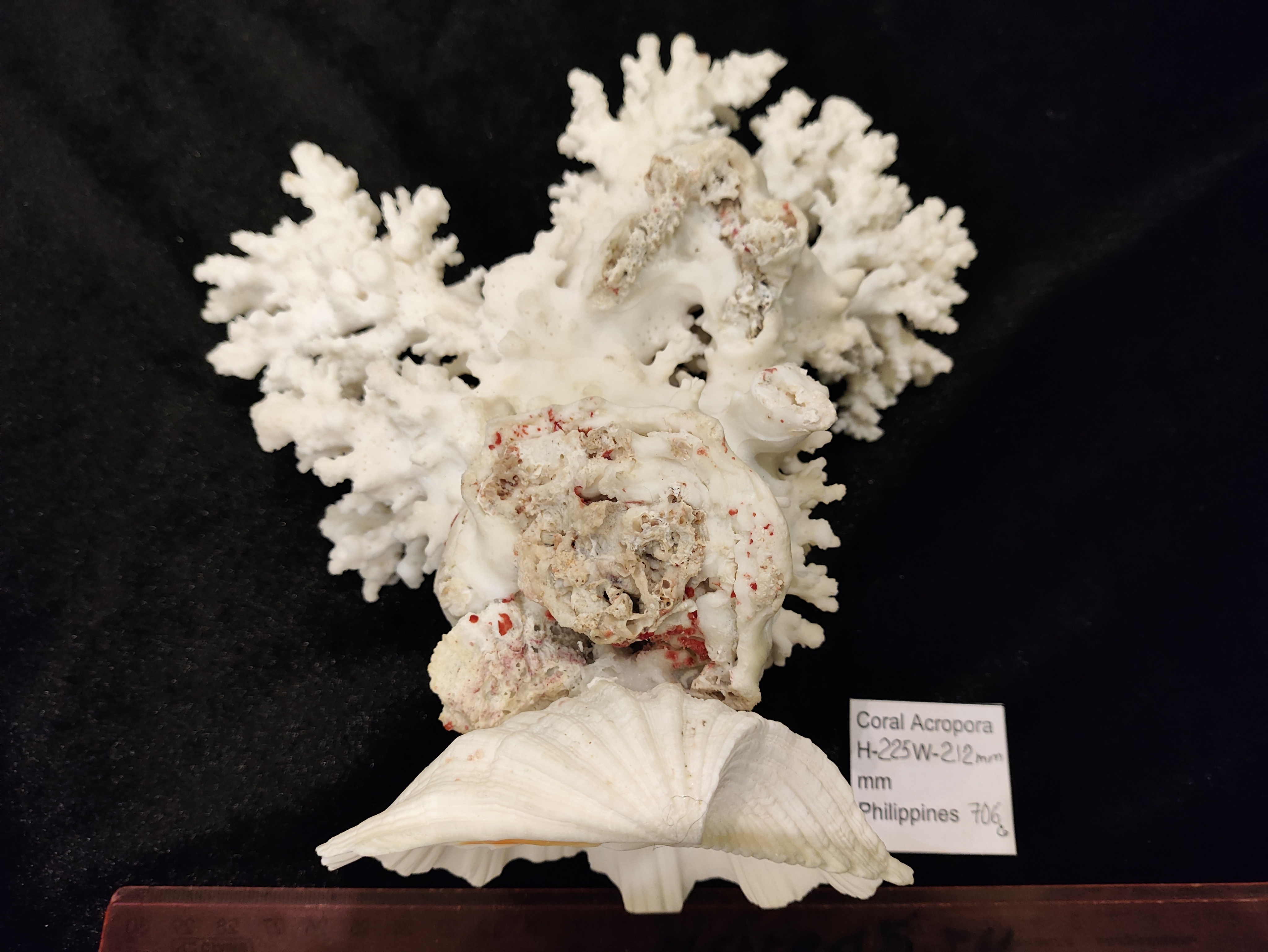 Натуральный белый коралл Акропора,Coral Acropora. Большая цельная друза, красивое строение ,на подставке морская раковина Хиппопус.Для дизайна и коллекции как сувенир.Филиппины. Фото для осмотра при заказе.