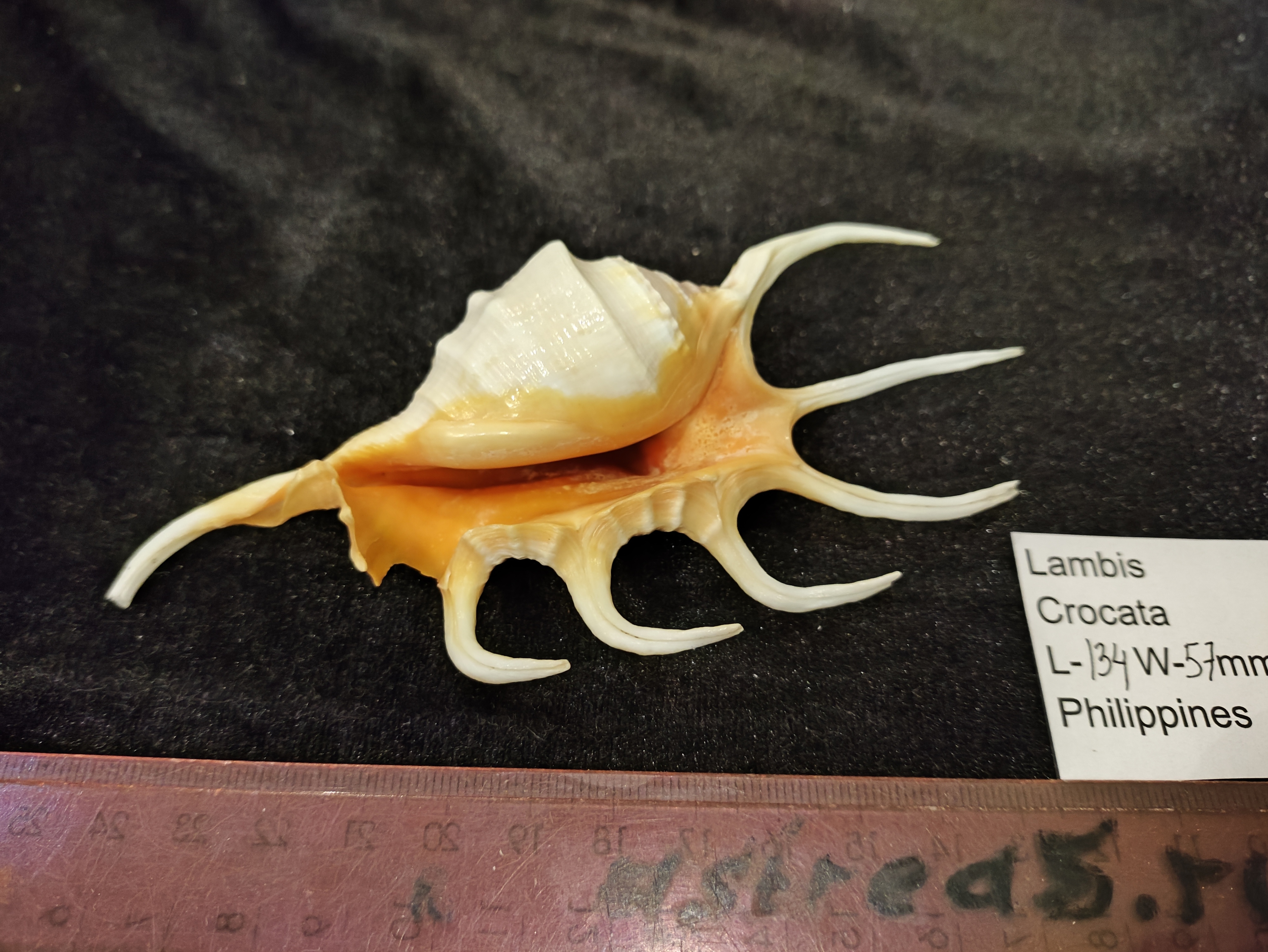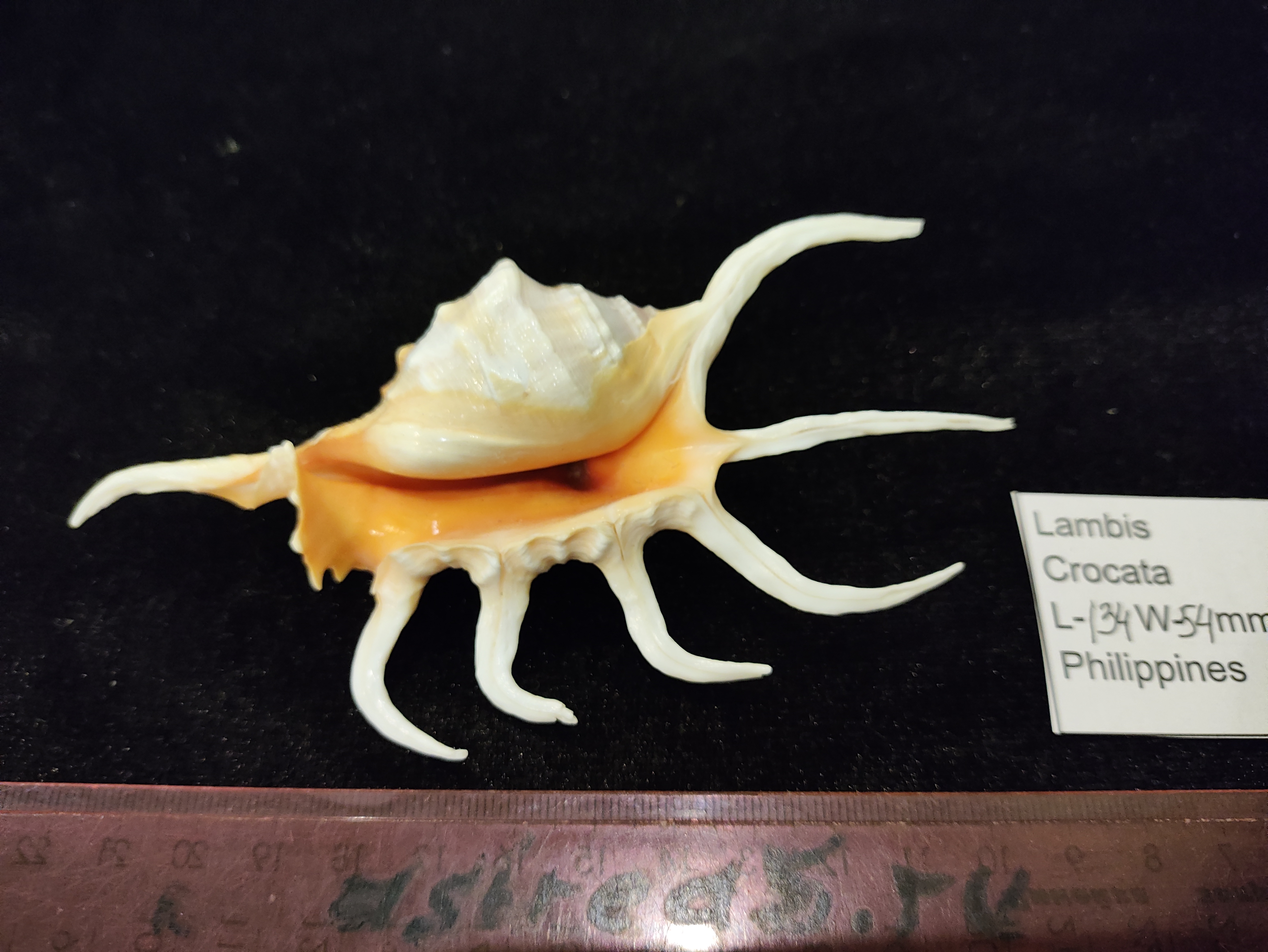 Фактурная раковина Лямбис Кроката,Шафрановый лямбис,Lambis Crocata,семейство,Strombidae.Общая окраска белый с желтым от бледного до насыщенного , устье окрас оранжевый.Разные размеры. Фото для осмотра при заказе. Филиппины ,Австралия.