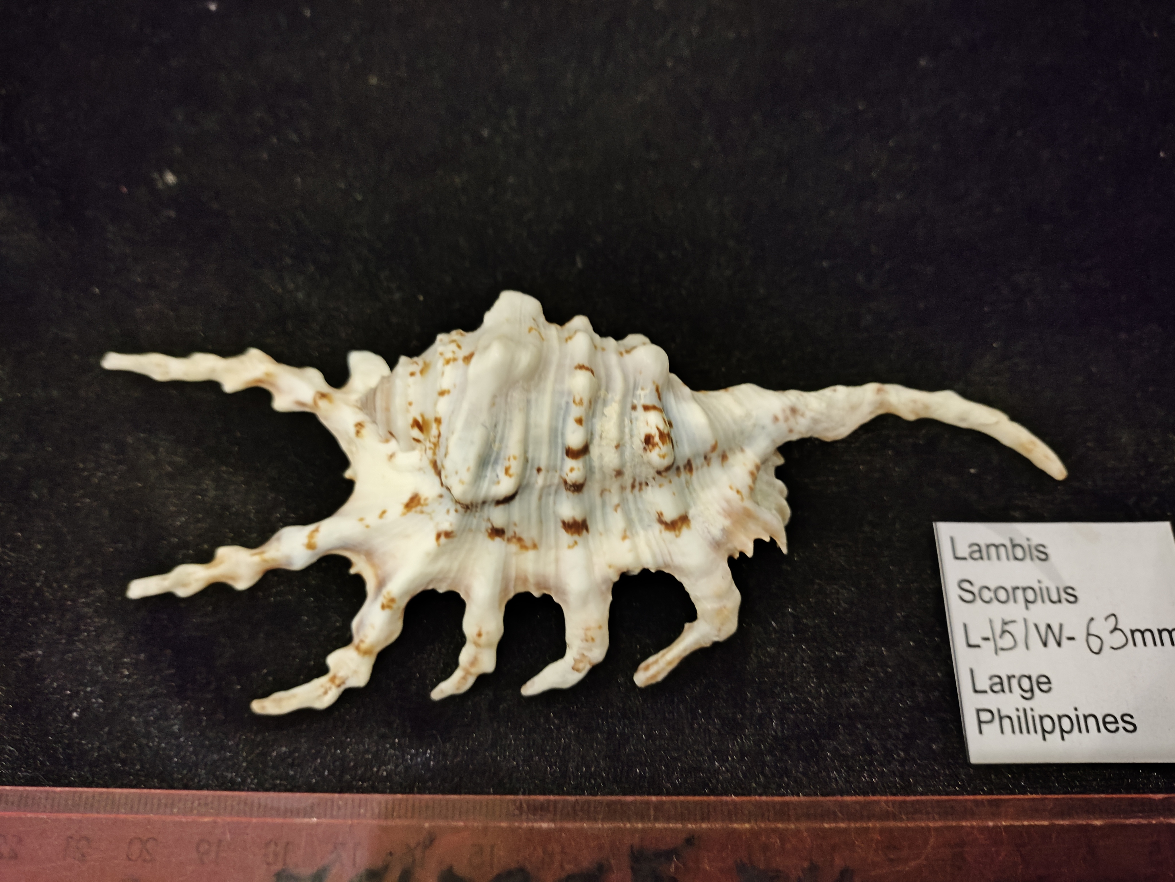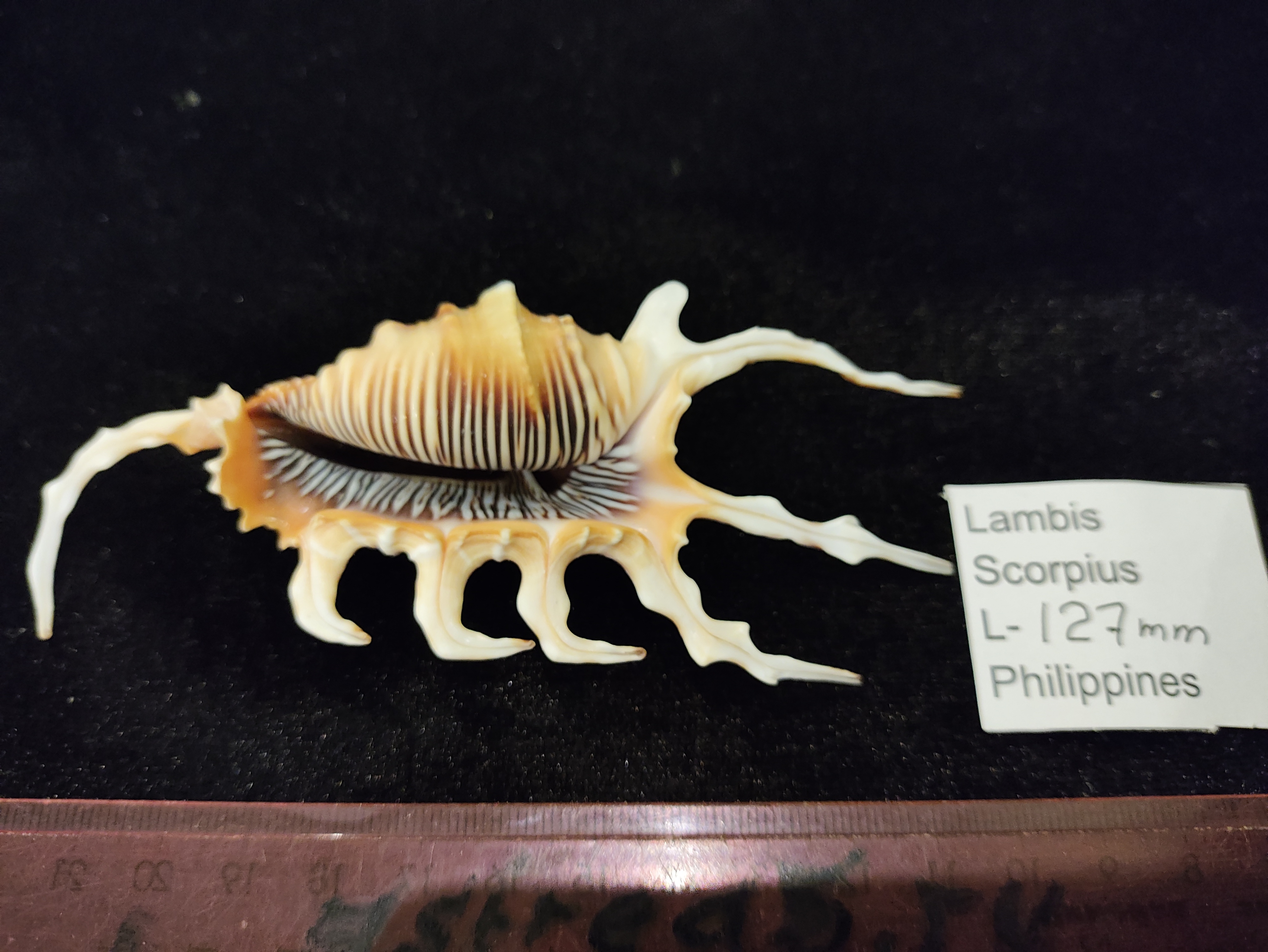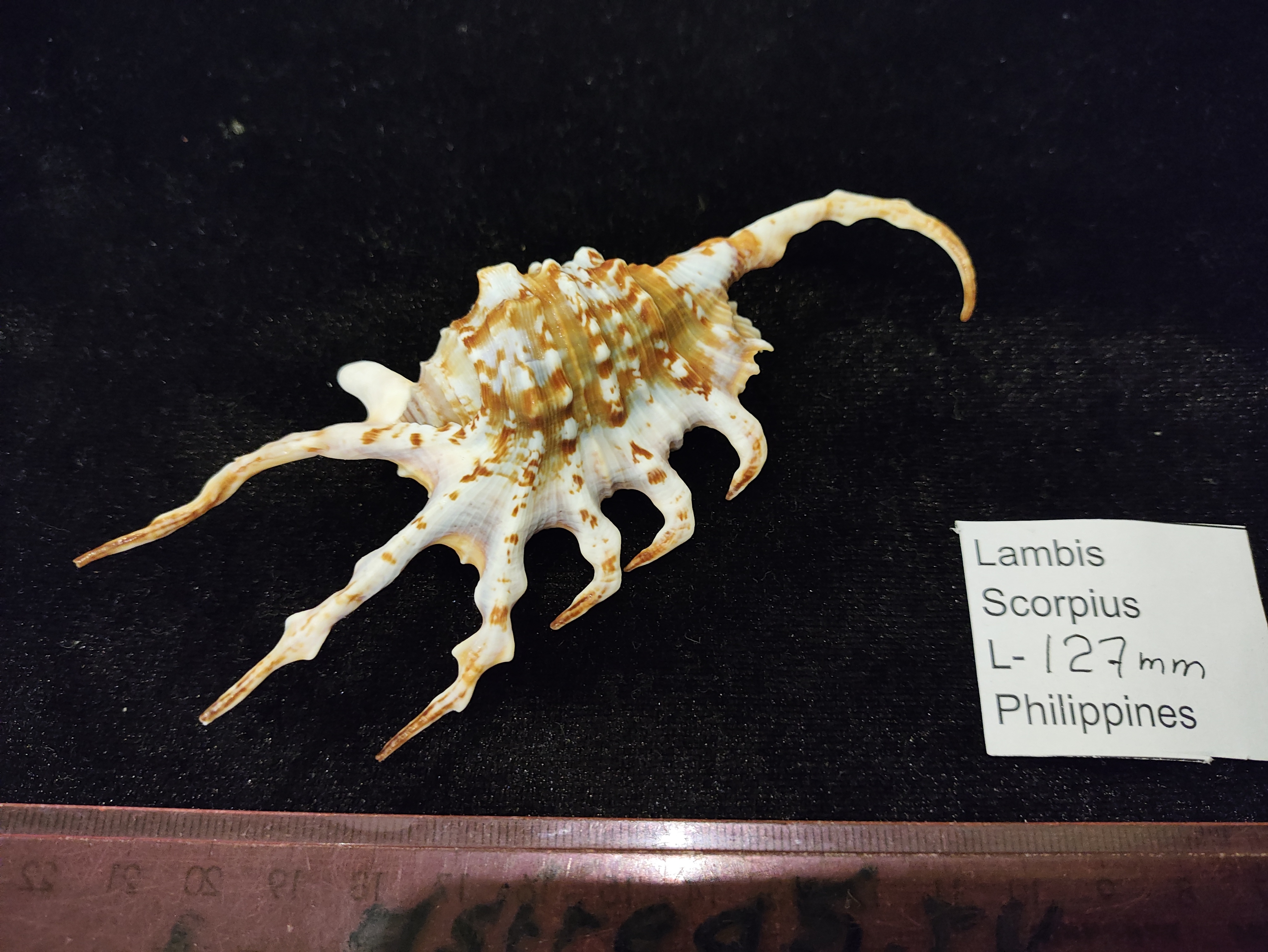 Фактурная морская раковина Лямбис Скорпиус, Lambis scorpius , ,семейство Strombidae.Общий окрас белый с коричневым рисунком,разного оттенка и насыщенности ,устье лилового цвета с переходом в светло оранжевый.Окрас отличается от места обитания.