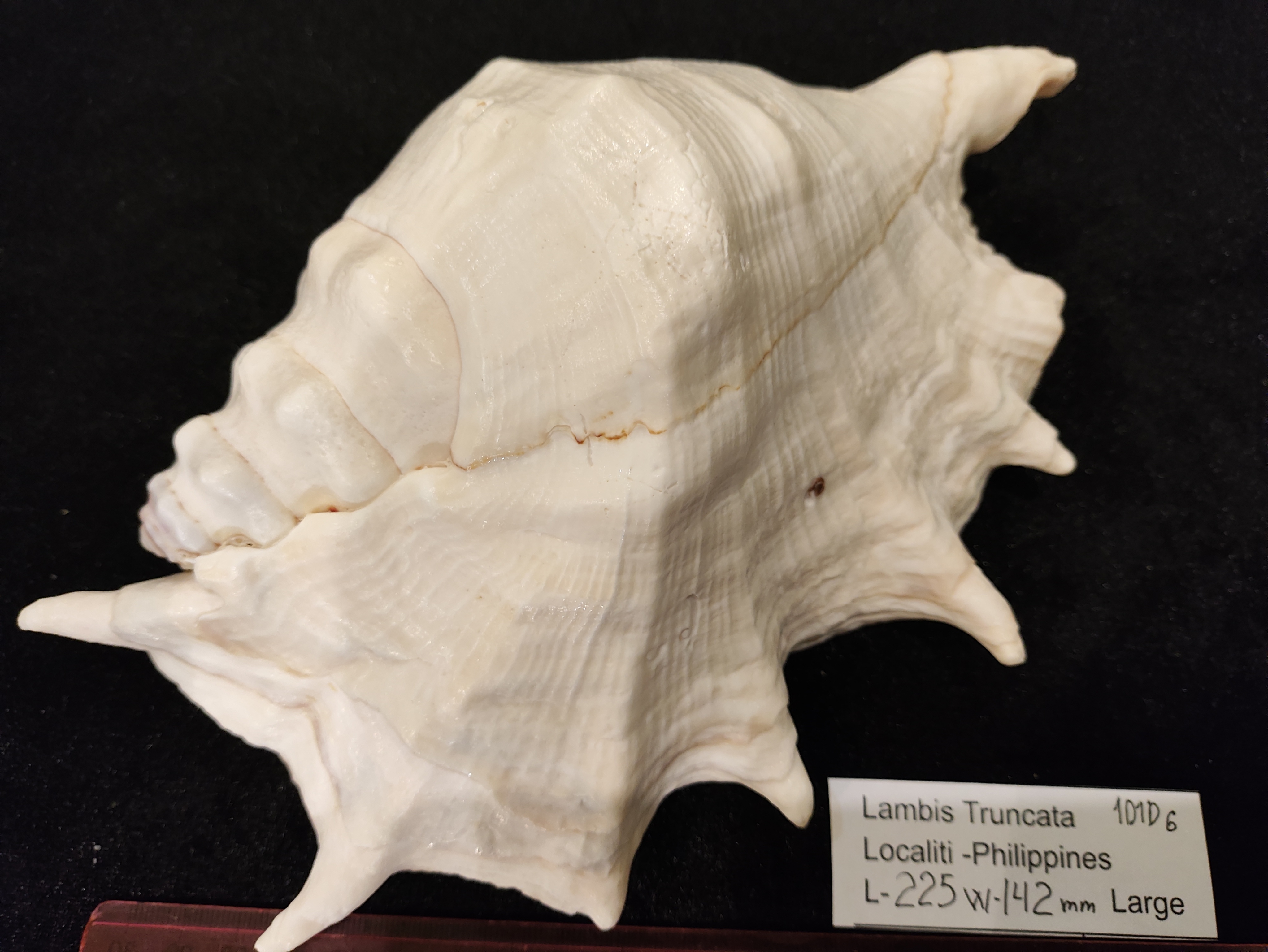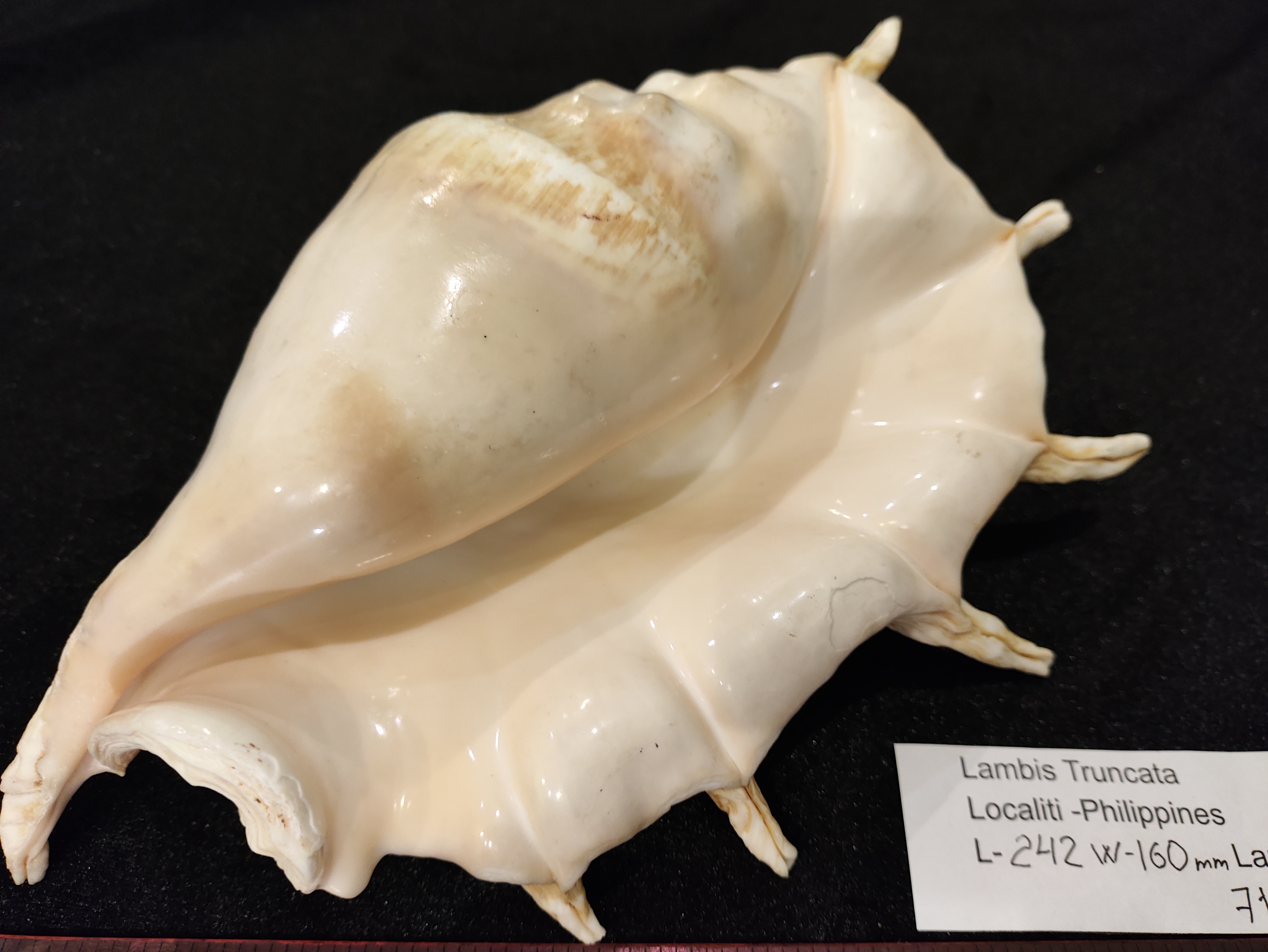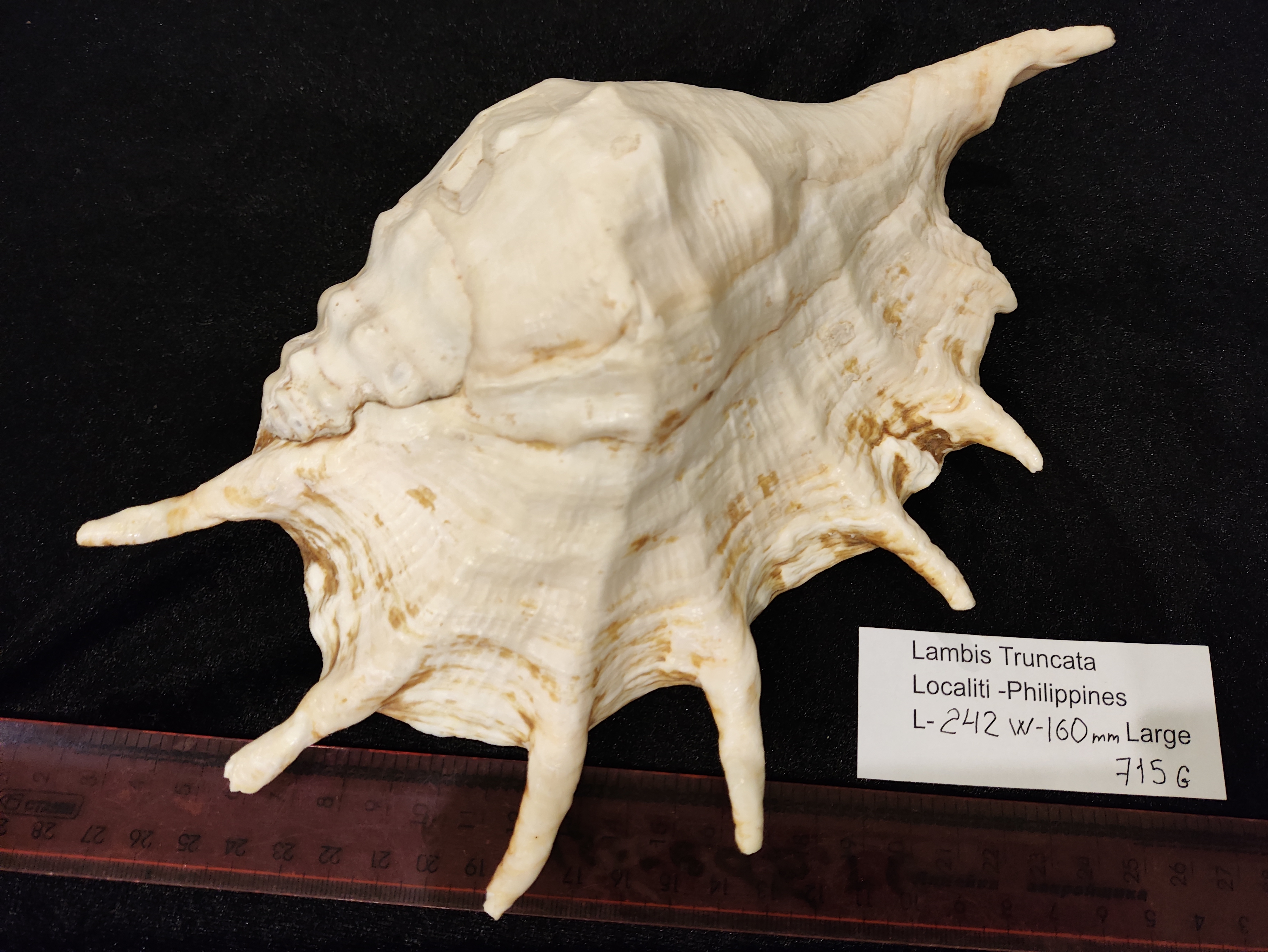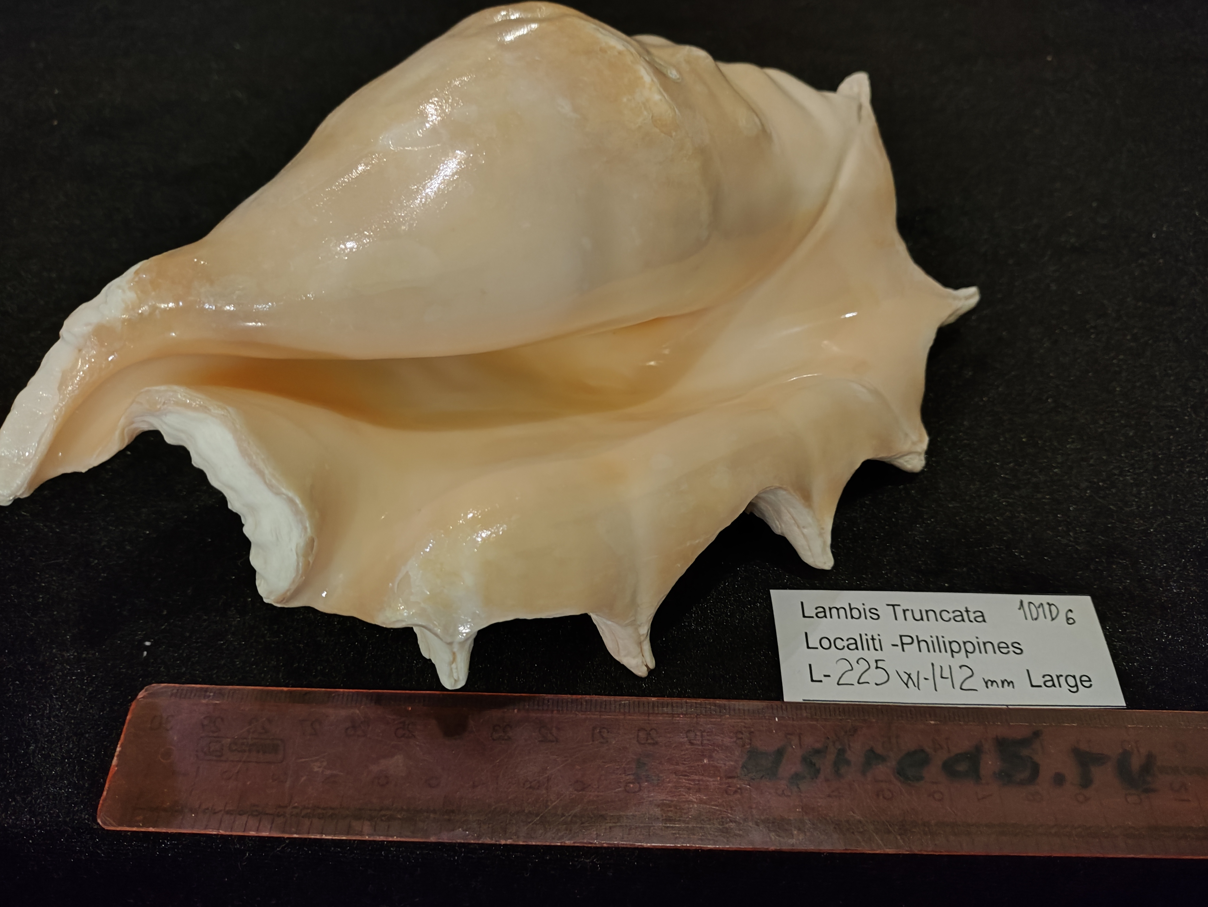 Большая толстостеная морская раковина Лямбис Трунката ,гиганская пауковидная раковина,Lambis Truncata,семейство Strombidae.Окрас верх белый до светло коричневого,устье глянцевое, светло розовое.Размеры большие. Австралия,Филиппины.