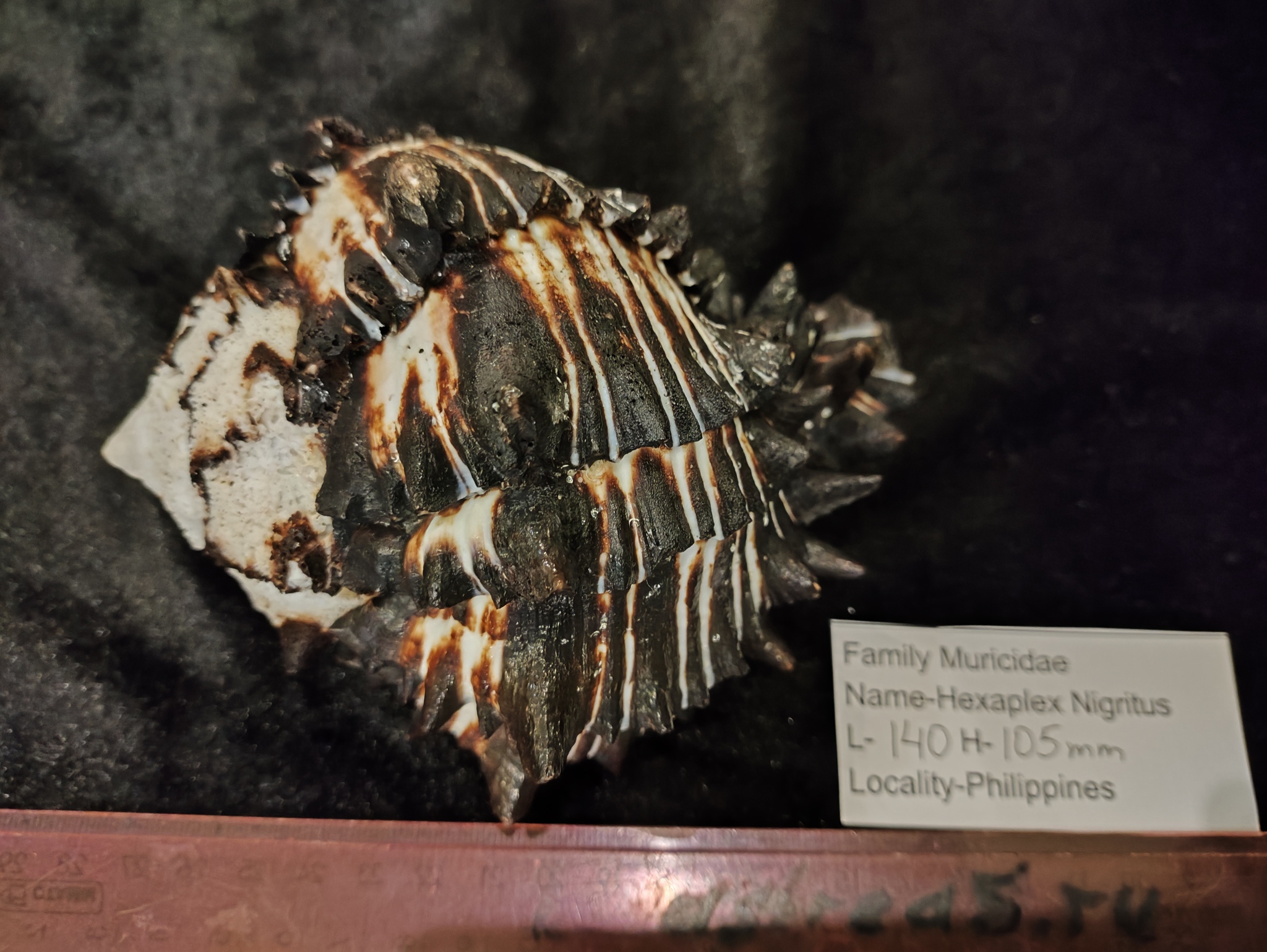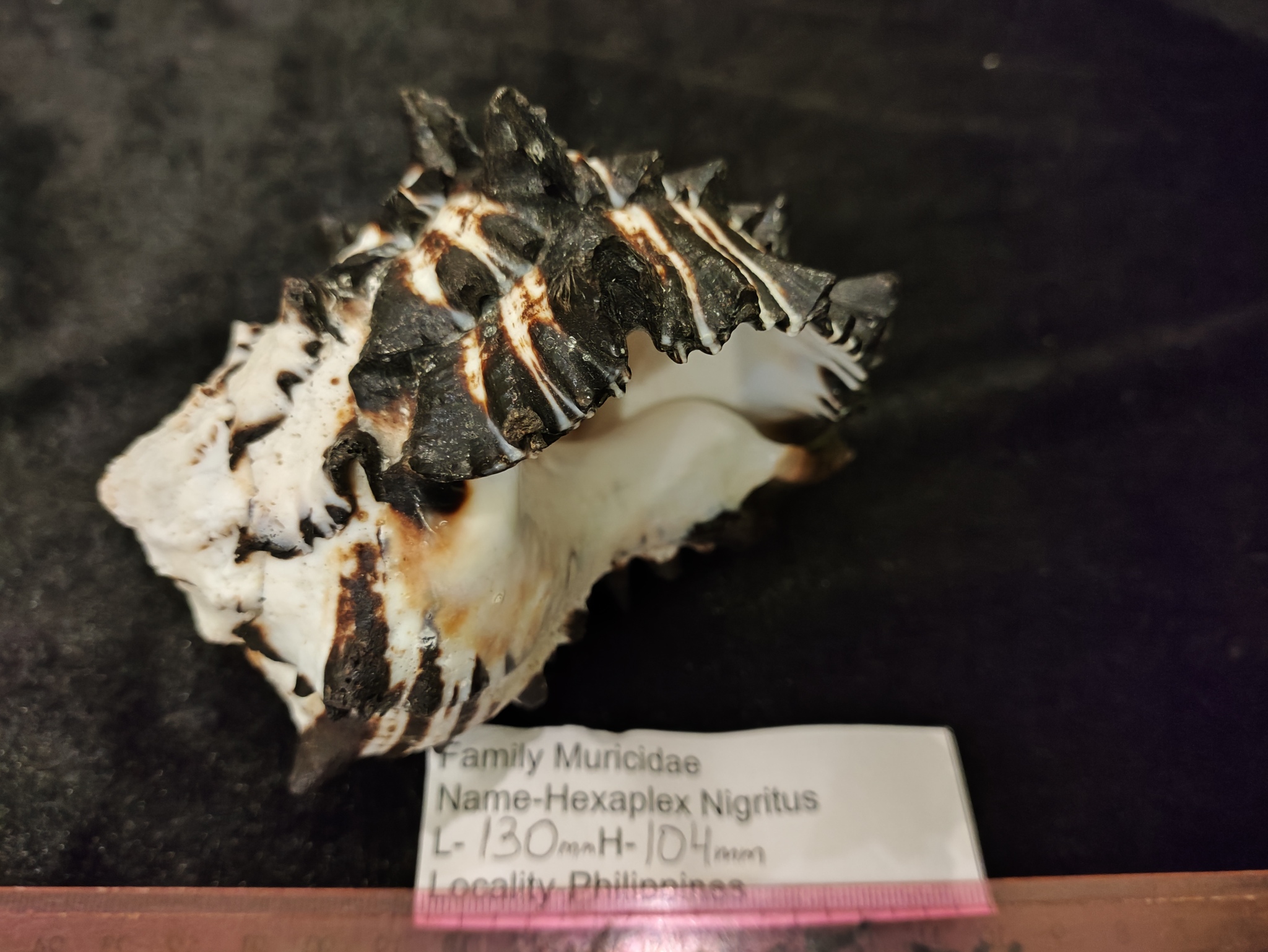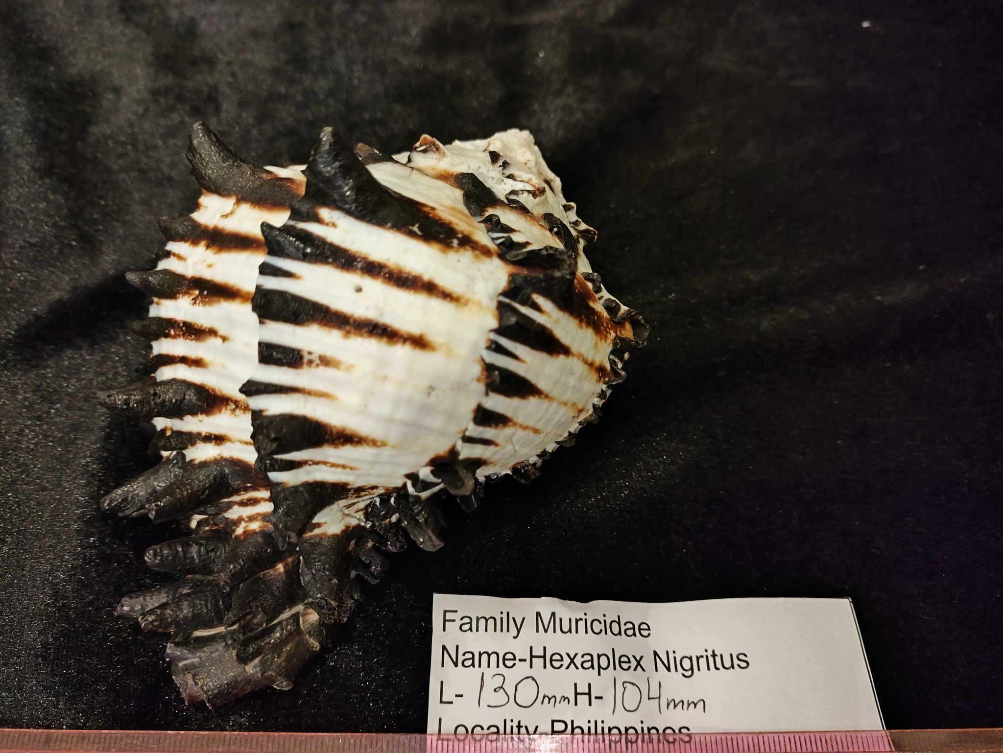 Толстостенная ,красивого черно-белого окраса морская раковина.Черный Мурекс ( Hexaplex Murcathus Nigritus),семейсво Murisidae .