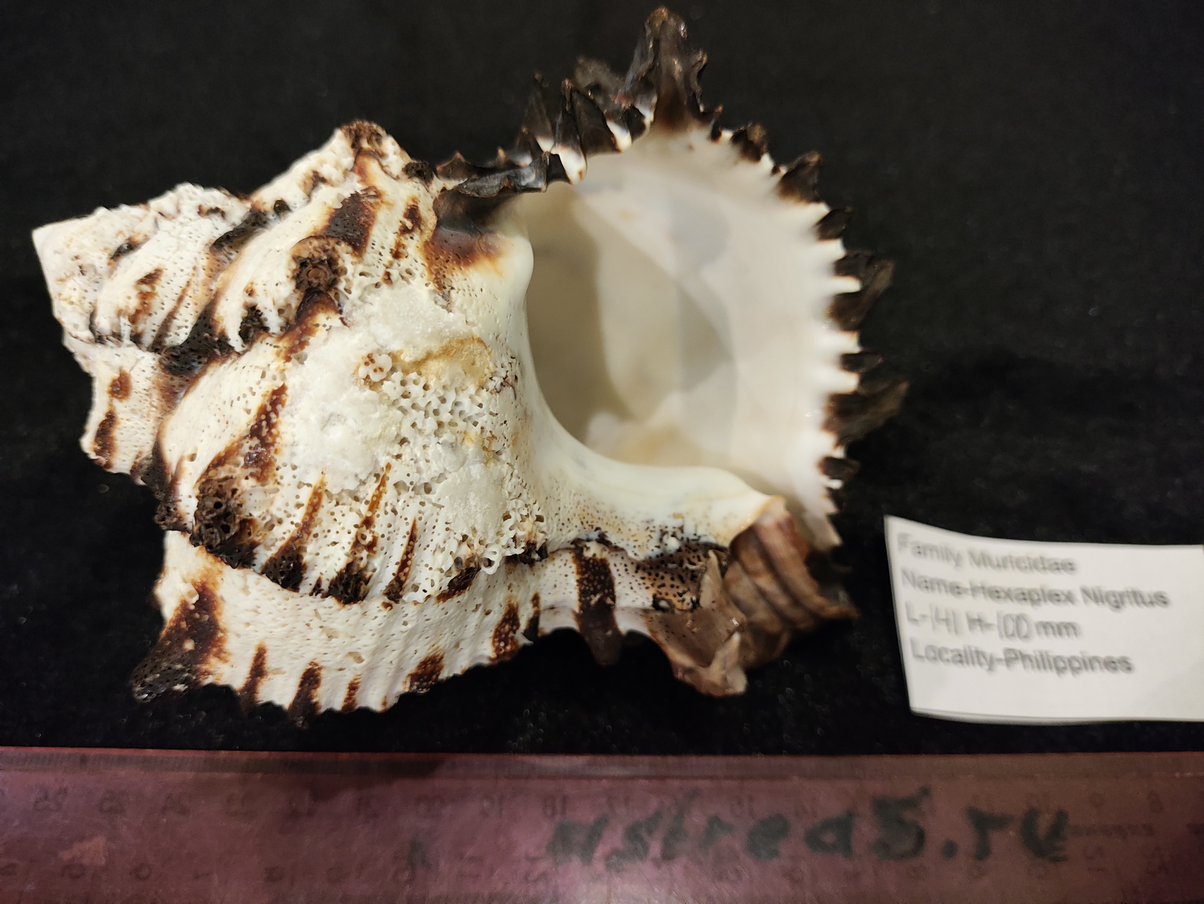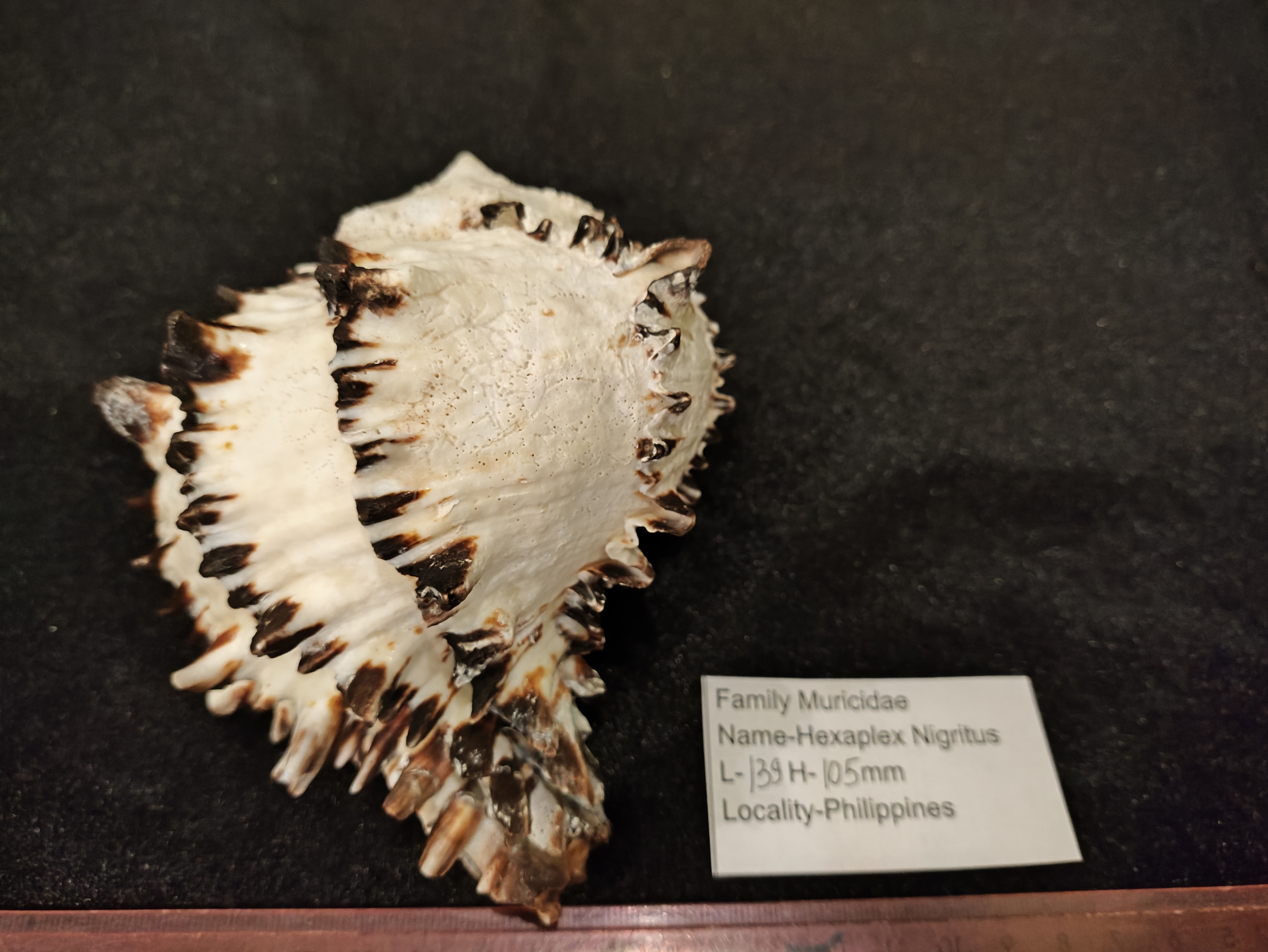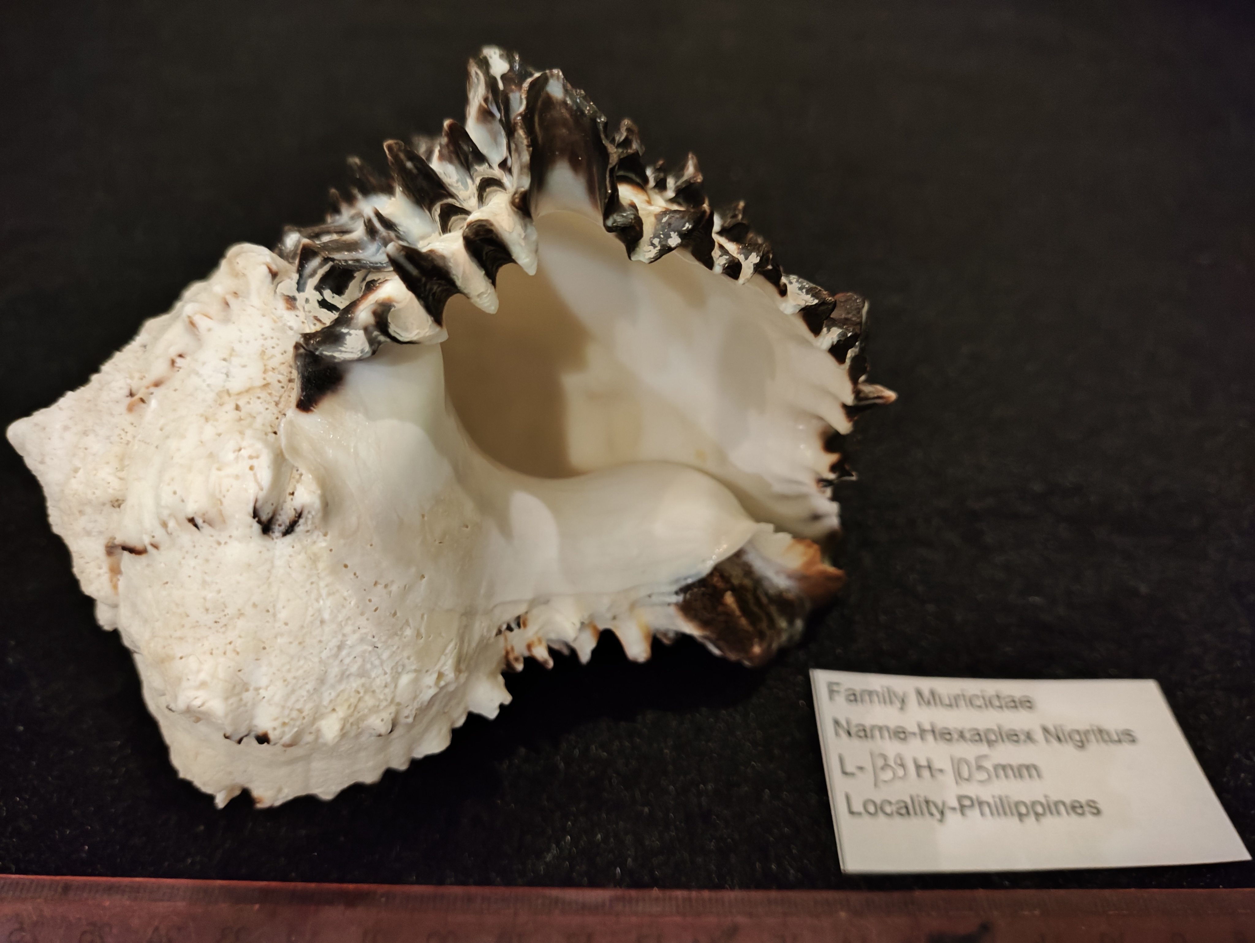Толстостенная ,красивого черно-белого окраса морская раковина.Черный Мурекс ( Hexaplex Murcathus Nigritus),семейсво Murisidae .