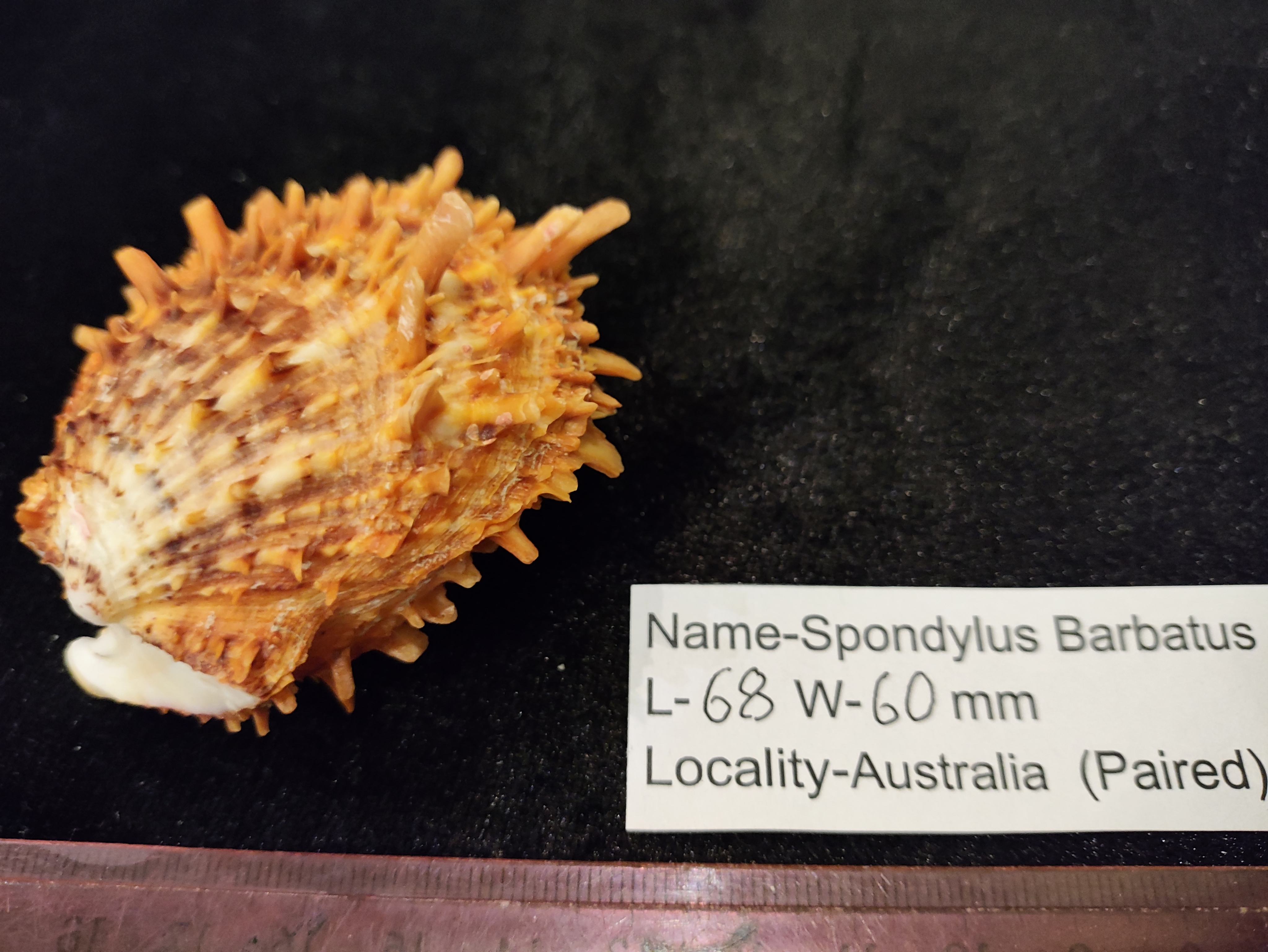 Парная раковина Spondilus barbarus,Спондилюс бородатый,(Створки склеены), семейство Spondylidae. Яркий,натуральный  оранжевый окрас,макушка белого цвета!Австралия,Филиппины .