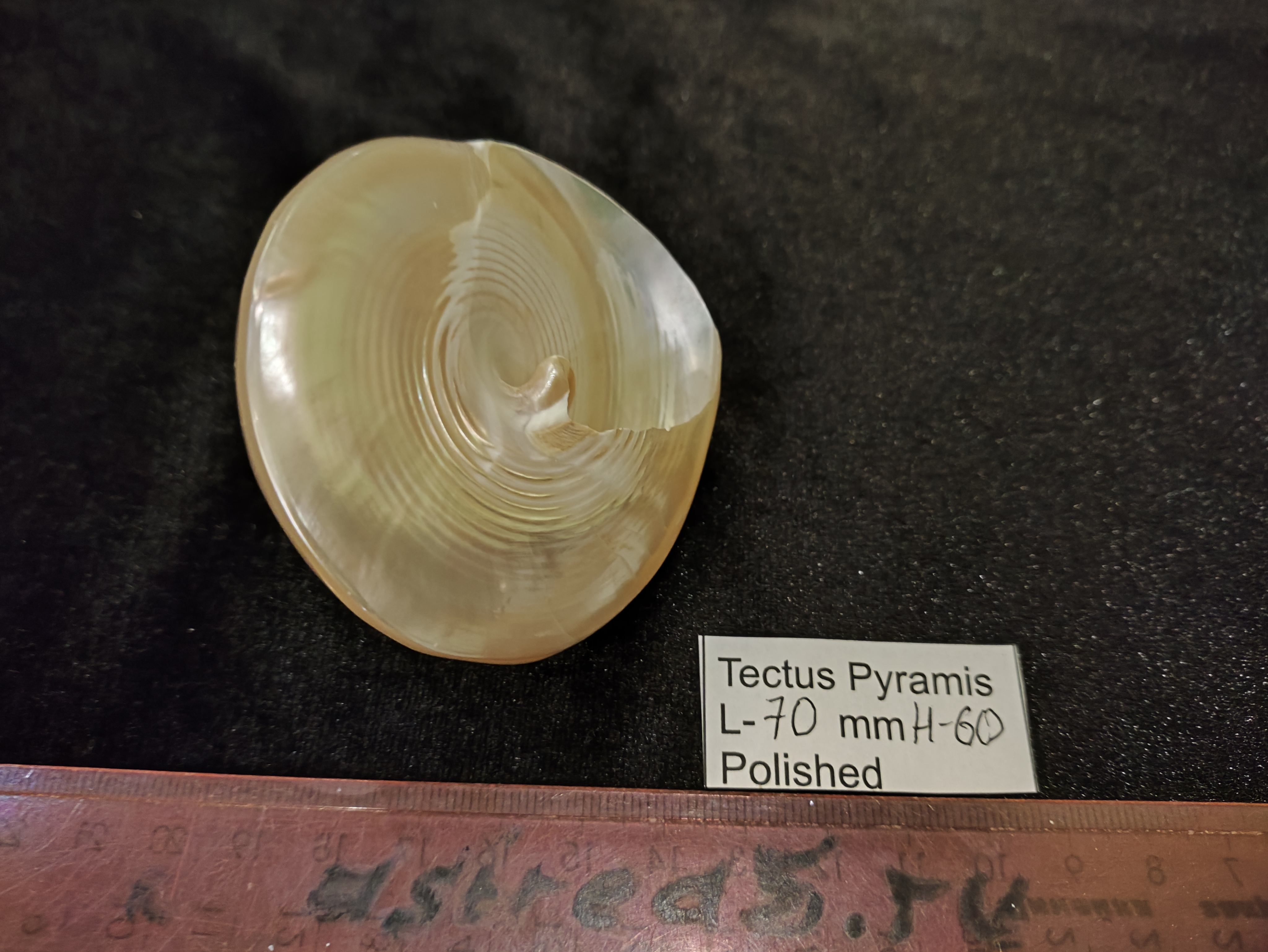 Морская раковина Trohus Tectus Pyramis , трохус тектус пирамис,пирамидальный,семейство Trochidae. Перламутровая,полированная раковина ,строение спиральными рядами  наружного слоя ,есть большой размер  этого вида. Для дизайна и коллекций ! Обитание Австралия,Филиппины.