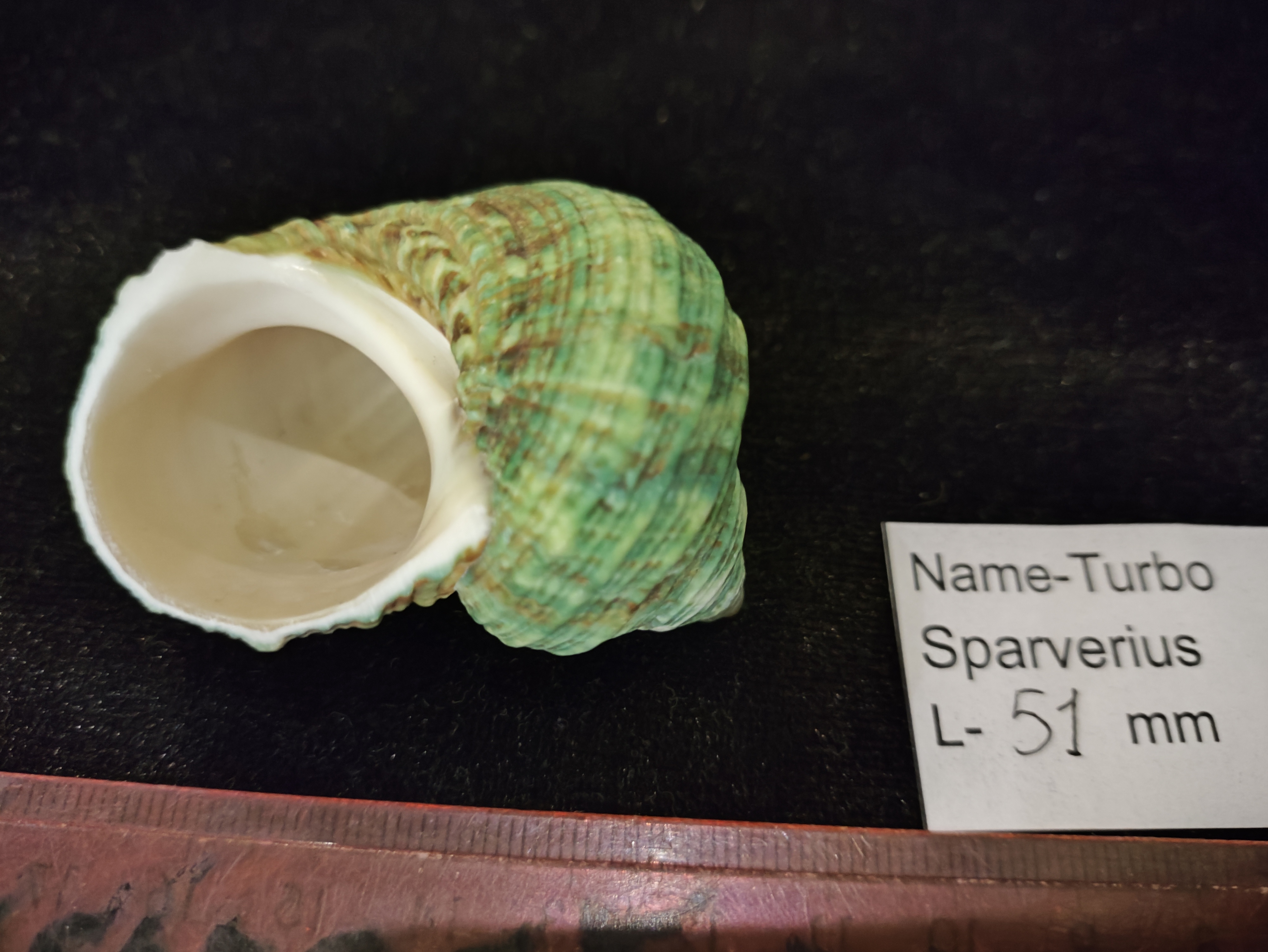 Тостостенная ,тяжелая для своего размера морская раковина ,выростают до 70мм .Поверхность ребристая ,темно зеленого с коричневым рисунком ,устье перламутровое,цвет серебро, под верхним слоем так же перламутр,идут под полировку.Для дизайна и коллекции .Индия ,Филиппины.