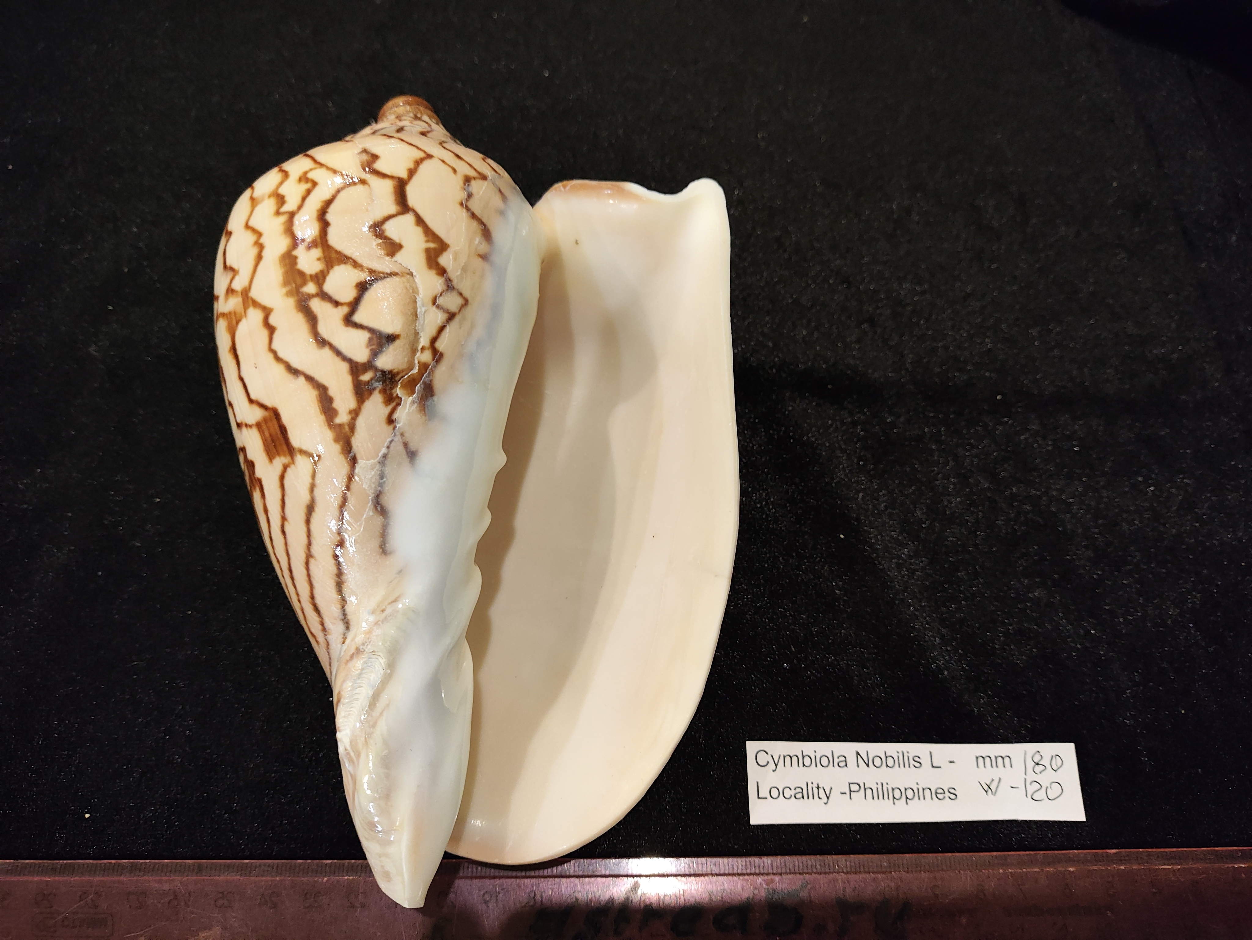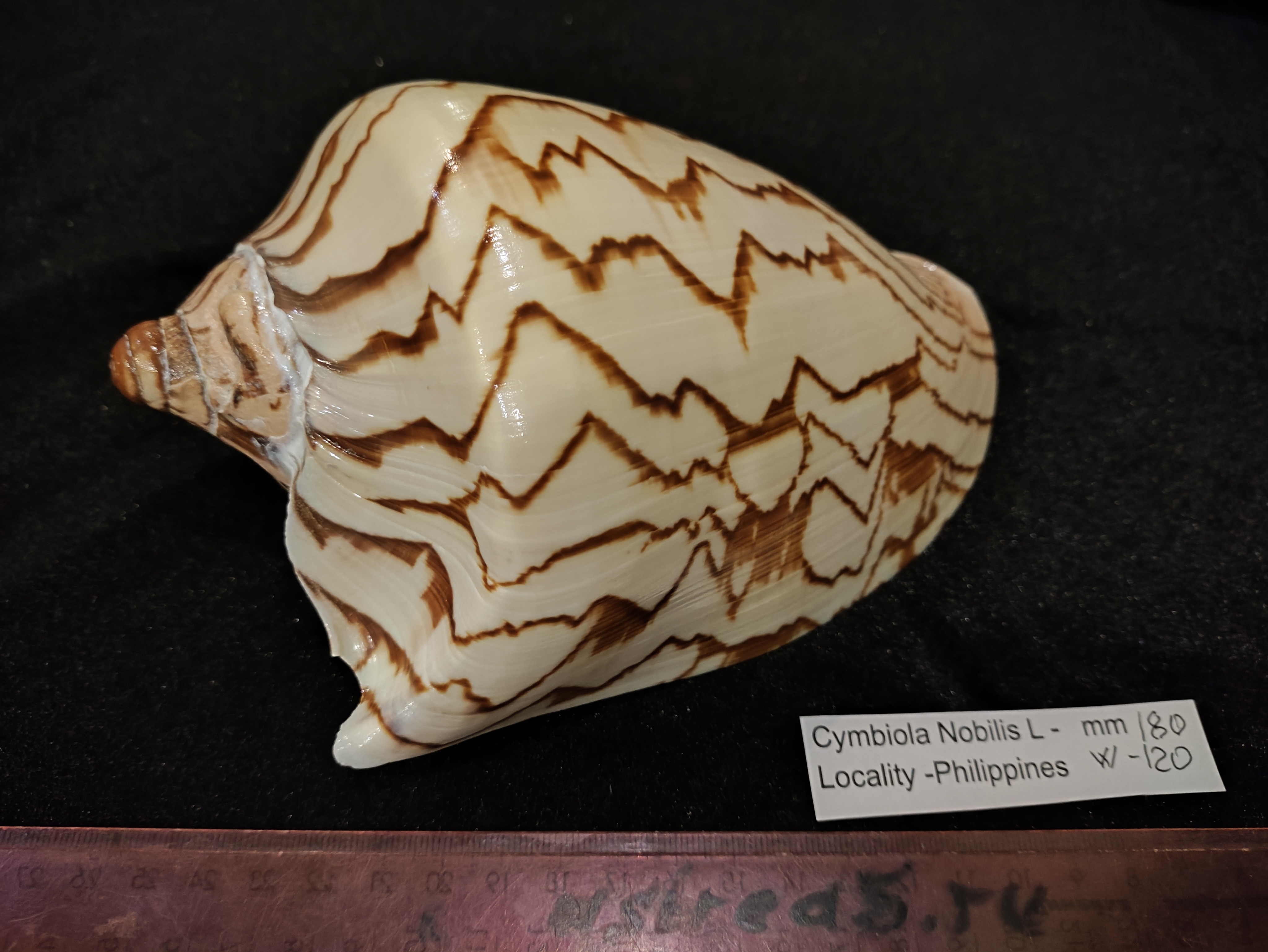 Морская раковина ,Cymbiola Nobilis ,Волюта Нобилес ,семейство Volutidae.
